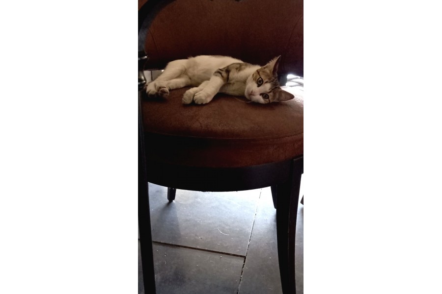 Çalıştığım kafede bulunan çok sevimli bir kedim var. Aşırı sevgi bağımlısı,çok uysal ve çok minik. :))